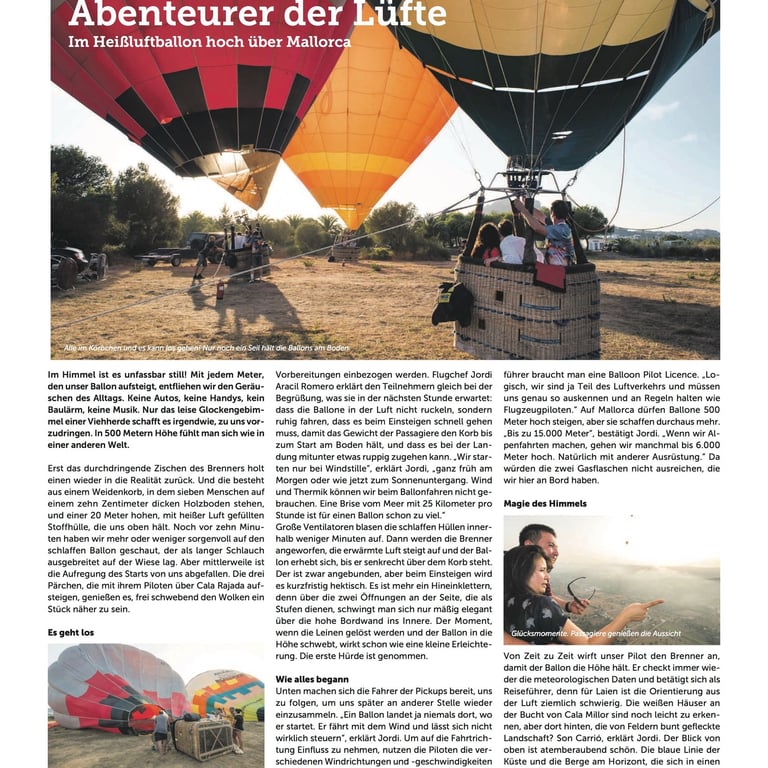 Reportaje fotográfico para ILLES BALEARS BALLONING. Proyecto realizado de conjunto con el fotógrafo Marcos Gittis para el periódico mallorquín El Aviso. Un paseo en globo en Mallorca es una experiencia mágica e inolvidable. Lograr captar la esencia del trabajo de un equipo que regala momentos únicos siempre es un reto. Compartir con ellos cada momento nos dejó una frase que invita a la imaginación ¨no hay nada parecido a ver Mallorca desde el aire¨